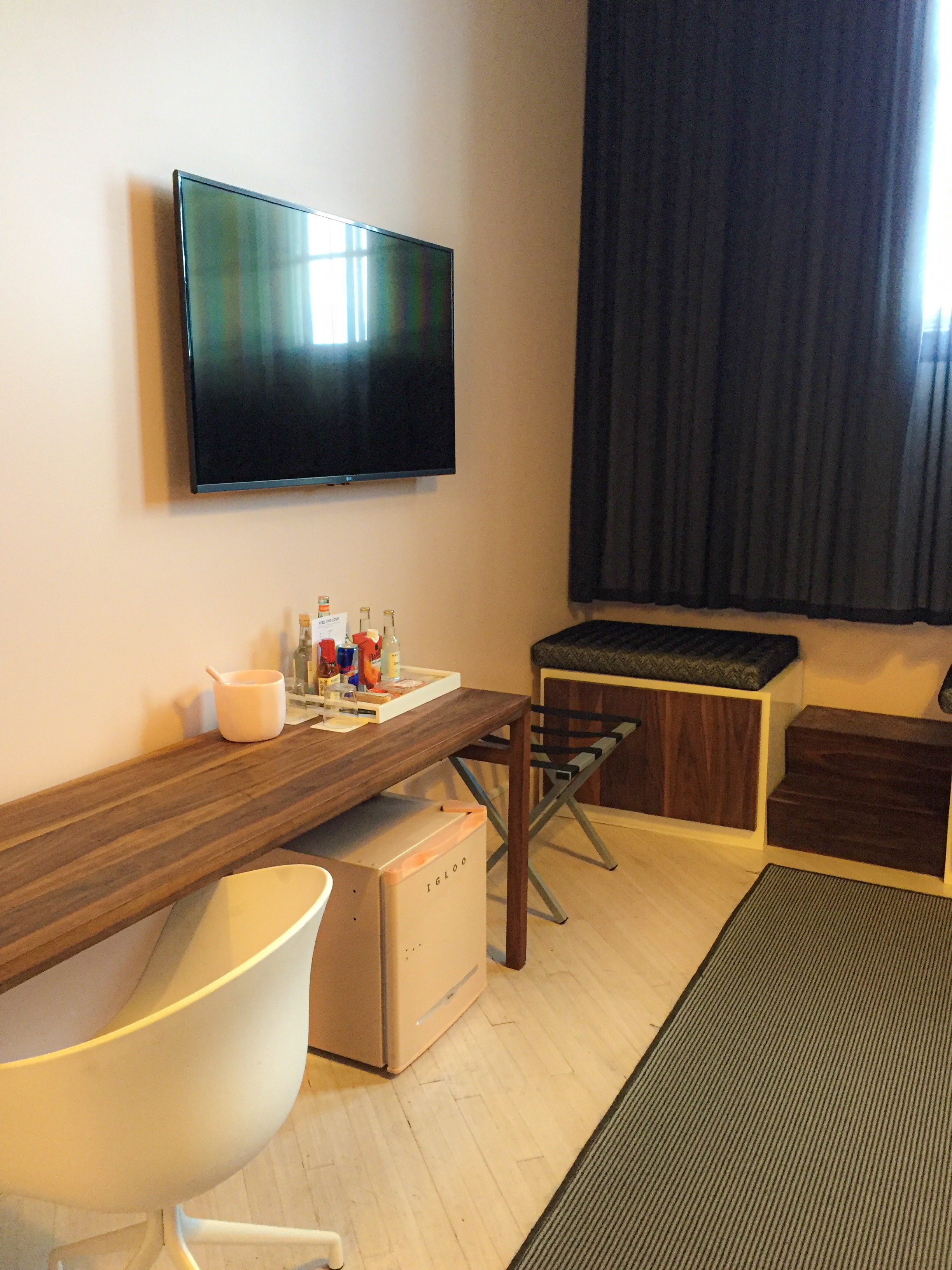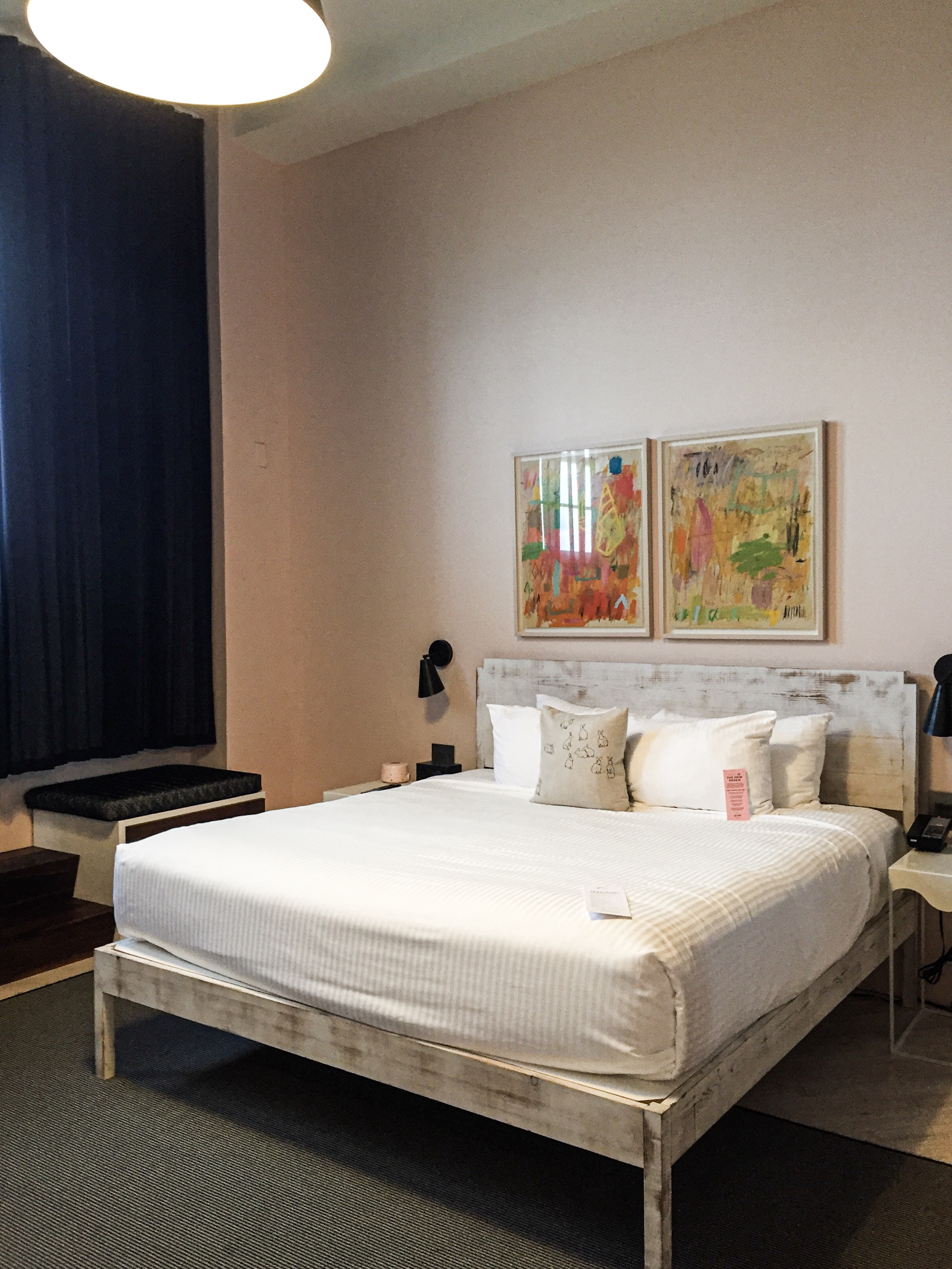 The décor in the lobby is just beyond words; nothing matches, yet they all compliments each other. The showstopper, in my opinion, is the winding metal staircase, which is just no words. I expect all the Instagram Girls to take various pictures either on or around it. The main thing I took from The Quirk, whether in the lobby, hallway, elevator, courtyard or bedroom, is that it’s all very Instagram-ready. I like this hotel because it does the hard part for you and gives you unique backgrounds and tons of natural light.